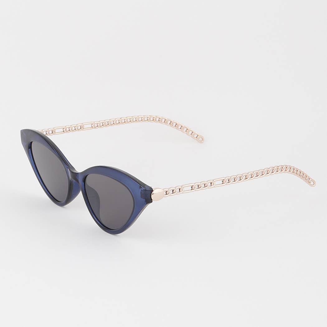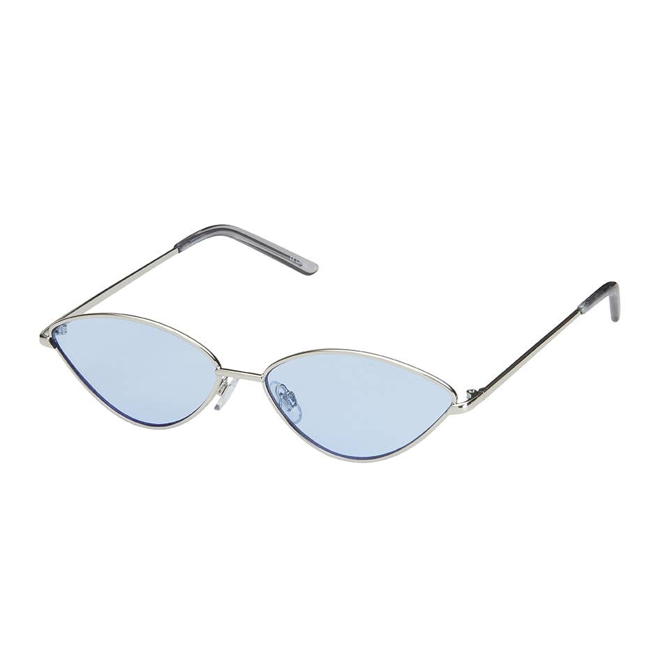 You won't be blue when you wear these sweet cat eye sunglasses. Sky blue frames and lenses will put your fashion on cloud nine. Made in China. Light blue frames and lenses. Lens Width 52mm, Bridge Gap 5/8", Sunglasses Width 5 3/4". 100% UVA and UVB Protection.