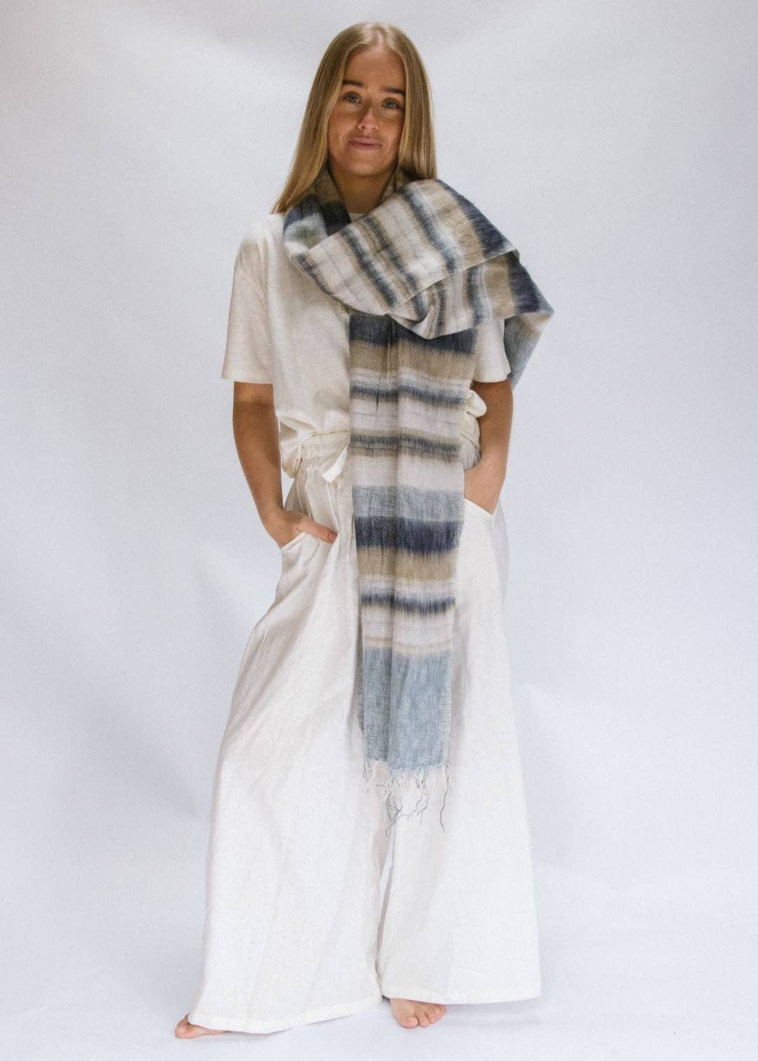 Our shawl, wrap, or scarf is a timeless wardrobe essential. Effortlessly dressed up or down, this cozy piece will become your go-to throughout the cooler months. Perfect for early morning yoga sessions or chilly beach sunsets. It also makes an excellent travel companion, offering warmth and a sense of home whether you're on the road or in the air. Details: * Approx. size overall 76cm x 188cm. * Cool hand-wash & dry with care. * Hand woven in beautiful Nepal on majestic wooden looms using a soft, unique yarn and finished with perfectly twisted tassels. Marabella, aptly meaning ‘beautiful sea’, this collection is inspired by our ocean and the wintery, stormy seas.From sand tones to vibrant accents, reminiscent of Marabella’s elements, this collection is a tribute to the winter waves and beach landscape. Marabella is comprised of classic tones that have been loved from seasons passed, with fresh new additions. We acknowledge the land on which this collection & concept was created upon; Wadandi Boodja. We pay our respects to elders & custodians past, present & emerging. Handwoven with love in Nepal. Always giving back to the Nepalese community who consciously craft this collection. We are proud to donate our time & funds with direct sponsorships and community donations where it's needed the most.