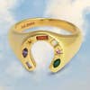 Who wouldn’t want a sparkling lucky charm to add to their ring stack? The charm is decorated with an array of irregular gemstones in rainbow hues that sparkle in the light. Each stone holds meaning and collectively these jewels create a dazzling talisman designed to bring the wearer luck and positivity Sizing and Materials: * 14k Gold-plated or Silver-plated brass * Cubic zirconia encrusted * Ring signet front measures 1.1 cm x 1.2 cm * Packaged in our signature fabric gift pouch Available in sizes: Extra Small - UK ring size J 1/2 or US size 5 Small - UK ring size L 1/2 or US size 6 Medium - UK ring size N 1/2 or US size 7 Large - UK ring size P 1/2 or US size 8 Extra Large - UK ring size R 1/2 or US size 9
