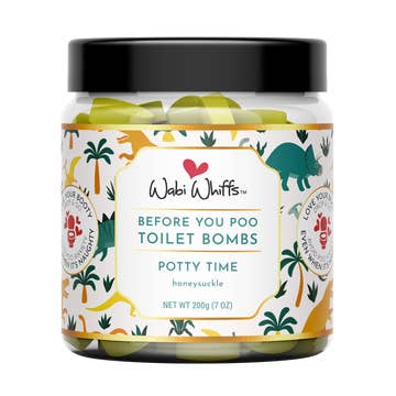 Potty Time (Honeysuckle) Fragrance Description: Honeysuckle, the perfect blend of sweet honey and summer flowers that transport you to a carefree fragrance experience. Contains yellow fizzing hearts with gold biodegradable glitter. Try First Light TooT, a perfect compliment. GREAT FOR POTTY TRAINING! Keep them handy and eliminate poo odor instantly. Drop 1-2 fizzing bombs (no judging) into the toilet. An effervescing fragrant film forms on the toilet water trapping and eliminating odors. Just Drop, Go and Flush when done. Let the FUN begin! Approximately 60 poos Contains cosmetic non-staining color, natural essential oils, biodegradable glitter, citric acid, and baking soda Discreet, convenient and works instantly Dissolves quickly with no need to wait for bombs to totally dissolve just DROP & GO and Have a Poo Happy Day! Septic safe (that’s code for YES, it’s safe to flush!) Non-Toxic bathroom odor solution