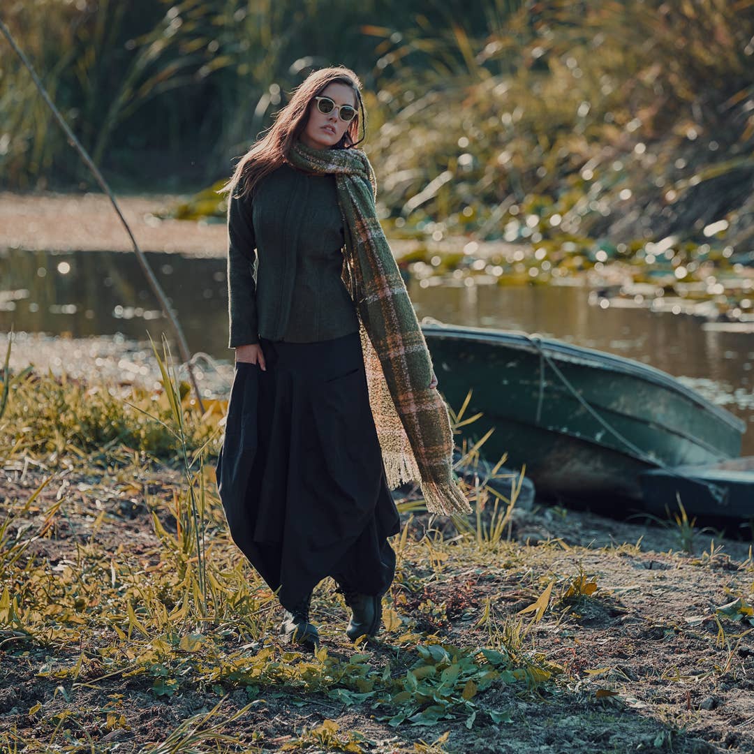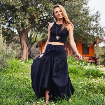 Adjustable Drawstring Tie, Elastic Waist, Oversized Pockets, Long Skirt