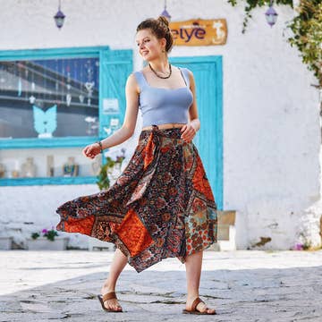 No reviews for Retro Print Asymmetrical Hem Tie Waist Boho Long Skirt yet.