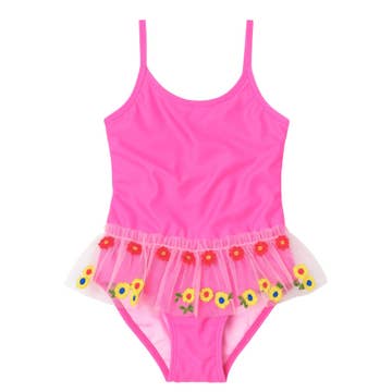 Make a splash in the Monaco Swimsuit. This one-piece swimsuit features charming ruffle details and a trendy print. In addition to its elegant look, this swimsuit offers excellent UV protection. Snap closure for easy diaper changes up to size 2 yr. SIIX Collection swimwear is UPF 50+ Fabric: 81% Polyester / 19% Lycra Care: Machine wash cold on delicate or hand wash. Lay flat to dry.