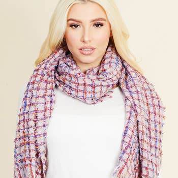Casual woven plaid infinity scarf with fray *100% Acrylic *APPROX. L 68" W 16" 3.92oz *Imported