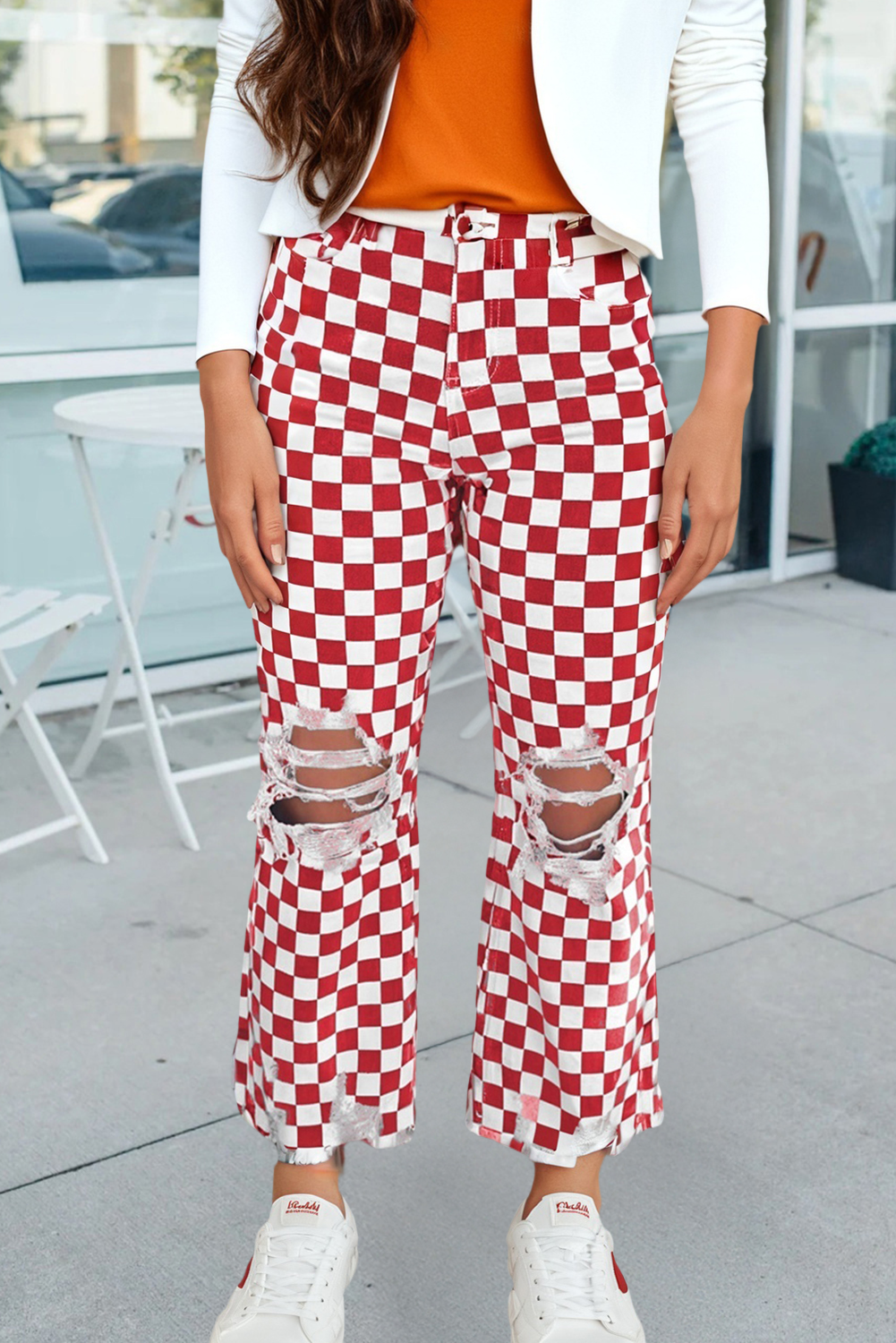 * These jeans showcase a distinctive checkered pattern that brings a classic and stylish look. Made with high-quality denim ensuring durability and a comfortable fit. The wide-leg cut provides a relaxed and comfy fit, perfect for a casual or retro-inspired style. The slightly pleated design adds detail to these casual jeans. Brand labels are not included by default. If needed, please add them via this link ($0.50/pc): https://www.faire.com/product/p_kzks8vegvk