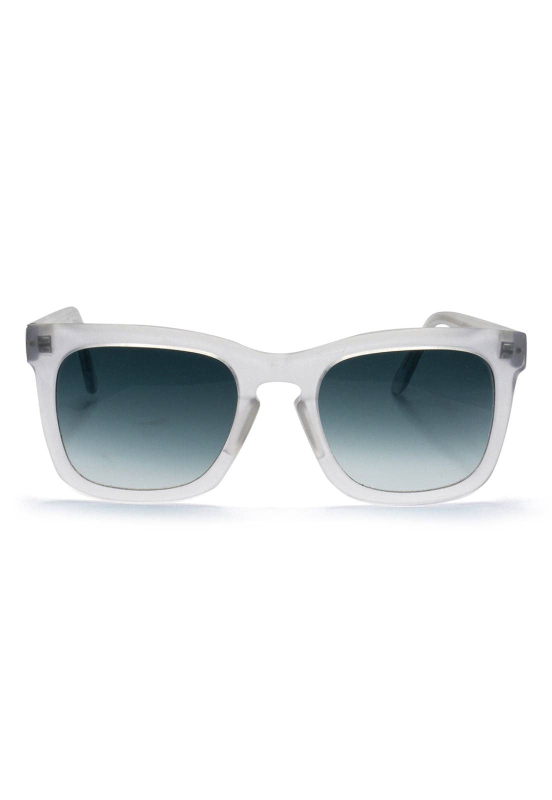 Stylish white cat eye sunglasses with gradient lenses. Features UV protection, durable design, and gold-tone accents. Perfect for a fashionable look.