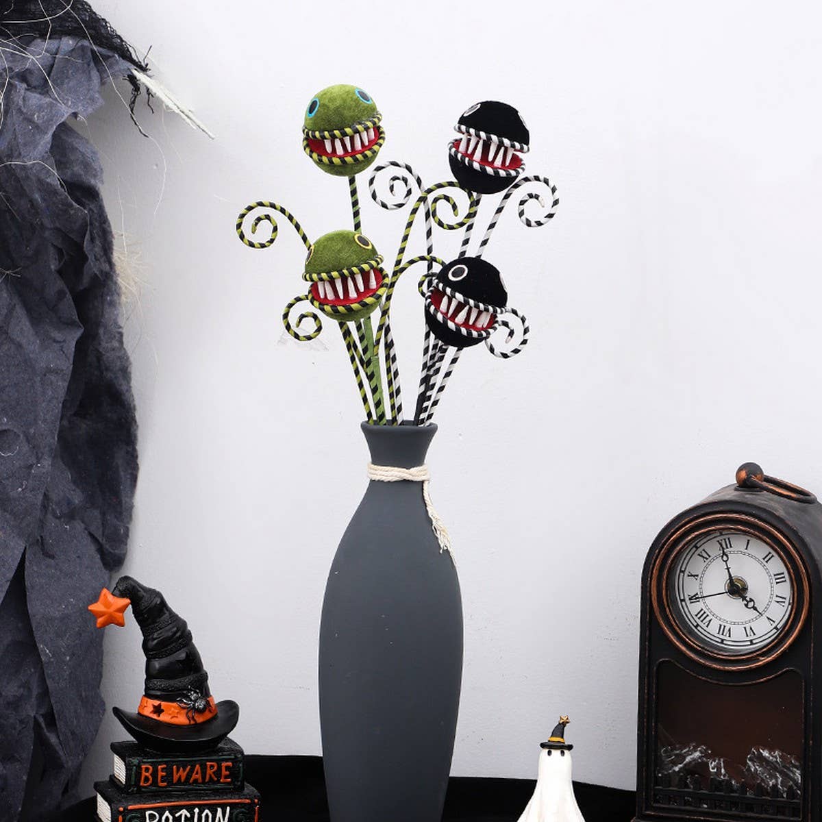 (NEW 2024 HALLOWEEN ITEM!) 18inch long Spray with 5pcs Black Glittered faux Spiders, a fun piece for Halloween decorations, Fall Decorations.