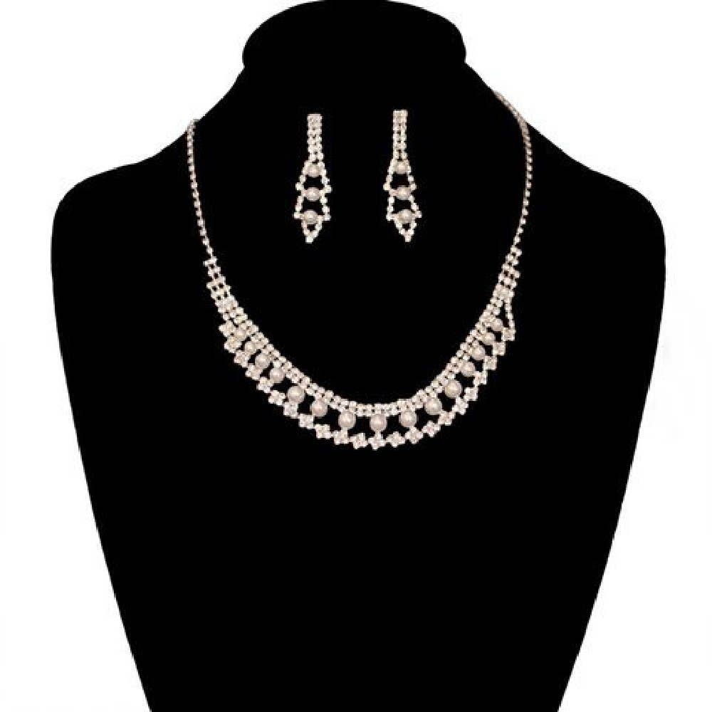Fashion Jewelry Set Rose Gold Plating Crystal Rhinestone Necklace Earrings Set