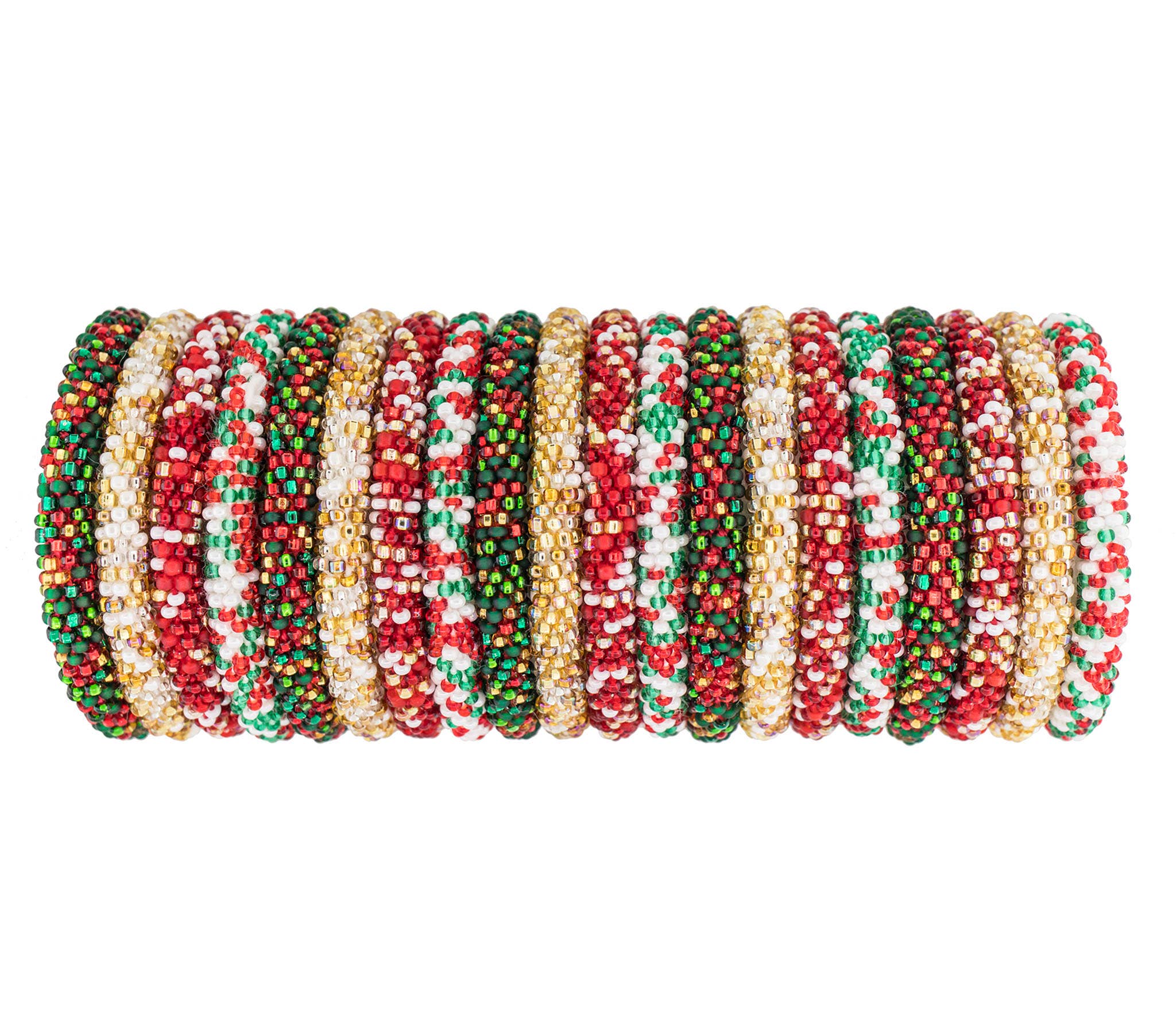 Our Mistletoe Roll-On® Bracelets are perfect for the Christmas time months. The green, white, and red set helps you to really show your Christmas spirit. These handmade bracelets are just what you need to pull your Christmas holiday look together. - The Original Roll-On® Bracelet for Kids! - Rollies® Bracelets set of 12 - 6” round - Part of our Specialty Sets Collection - Ethically Crafted by our women artisans in Nepal - High quality glass beads and hand-dyed cotton thread - Expands over your hand to fit most wrists - Aid Through Trade is a Founding Member of the Fair Trade Federation and is the only authorized provider of Fair Trade Roll-On® Bracelets