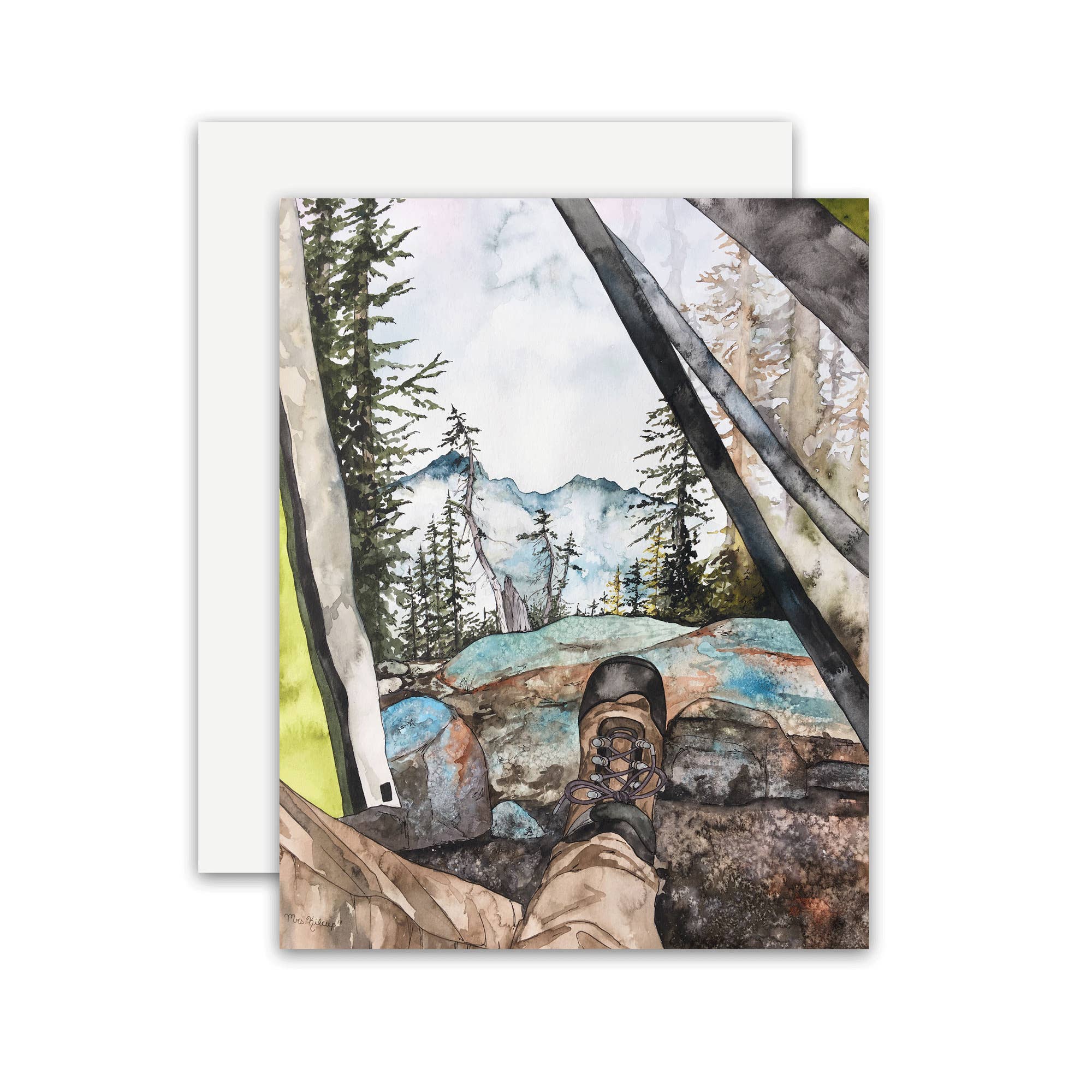 Greeting card with recycled envelope. Packaged in a clear sleeve. Card size: 4 1/4" x 5 1/2". Blank inside.