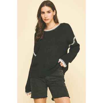 Knit sweater with star print accents. Features a v-neckline and relaxed fit. Perfect for casual or cozy outfits. Fabric: 65% ,Polyester,35% ,cotton Weight: 0.88 lb