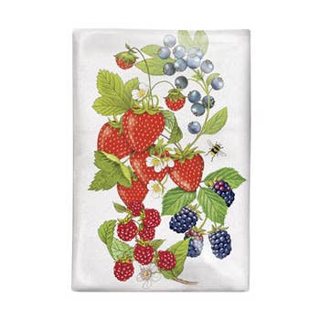 Best seller! Bursting with color, our vintage-inspired cherries design is printed on 100% cotton flour sack woven to our specifications – lint free and gets softer every time it’s washed. 17" x 24", J-hook for easy display. Coordinates with our VL15T Cherry Tile tote bag.