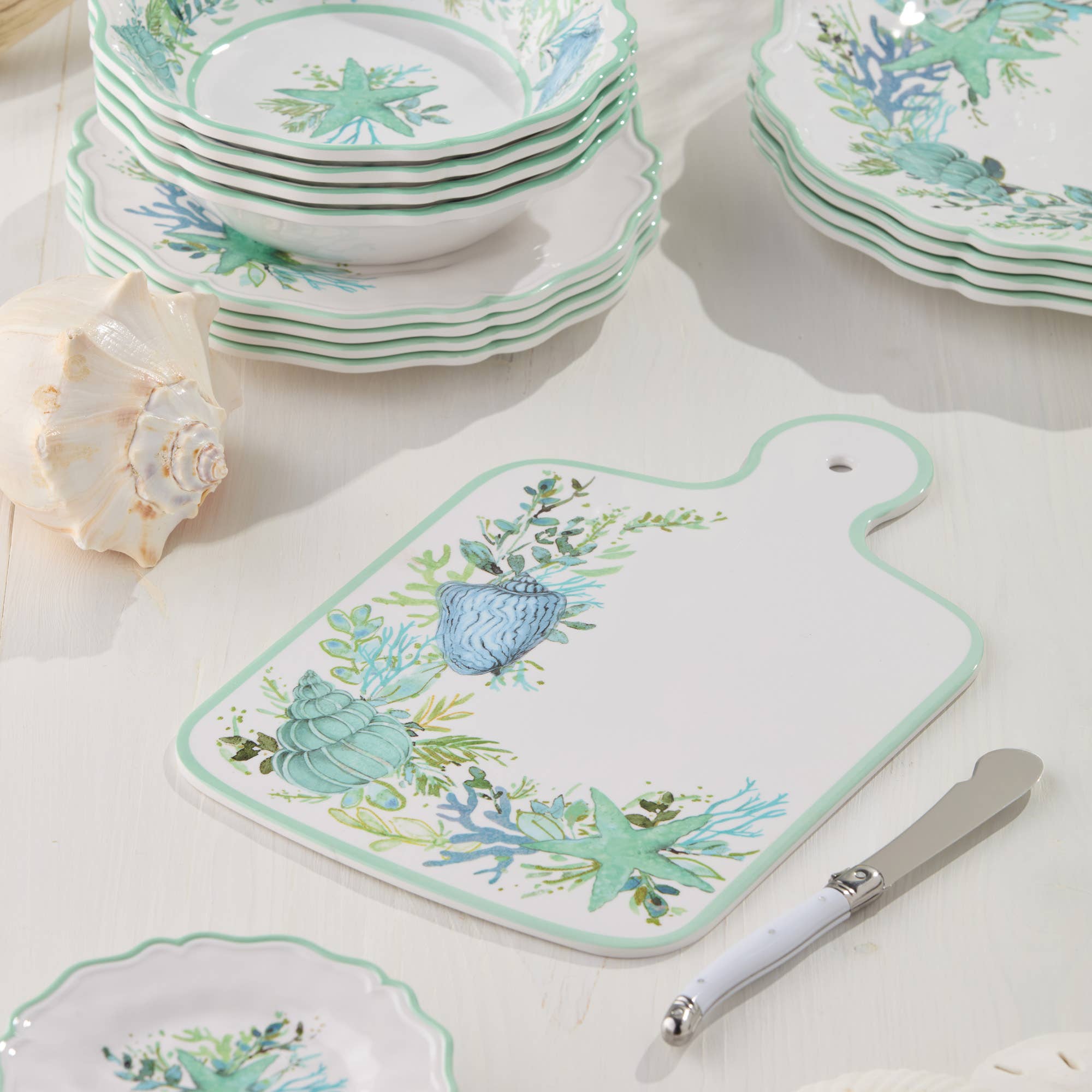 Erin Gleeson's photography and watercolor illustrations come together in a unique collage on this stunning cheese board, perfect for festive entertaining and food presentation. This cutting board will look as pretty resting on your countertop as it does on the table! Each board is handmade to order in the United Kingdom and arrives in 7-10 days. Size: 12x9in Material: Stonemax, a durable, heat-resistant, antibacterial, hygienic, non-porous, food-safe material similar to resin. Hand wash only