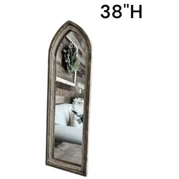 2PC Set Cathedral Wood Arch with Mirror, White - H-7