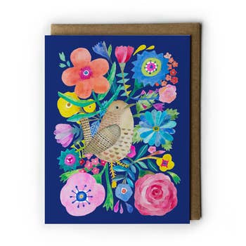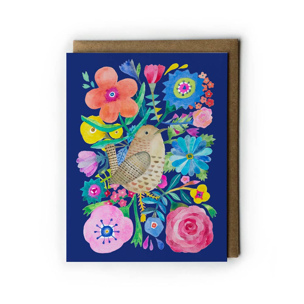 Hand painted image originally created on a ceramic tile. Offset printed on heavyweight card stock. 4.25" x 5.5" folded. Blank interior with matching envelope. FSC certified paper with recycled content.