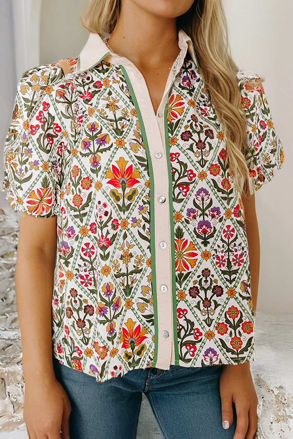 SKU: Boyfriend Button Down - Festival Print Made in India Aesthetic: Bohemian and Casual Care Instructions: Hand wash Color: Multi-Colored Embellishment: Piping Fabric: 100% Cotton Fit: Missy Occasion: Everyday and Loungewear Pattern: Animal Print Season: Resort Product Language: English