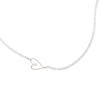 This handmade sideways heart necklace looks great on everyone and with any outfit! It's a classic with an artistic, one-of-a-kind flare. Each heart is created by hand, so no two are exactly alike. Length : 18". (approx. 1 ½” heart).