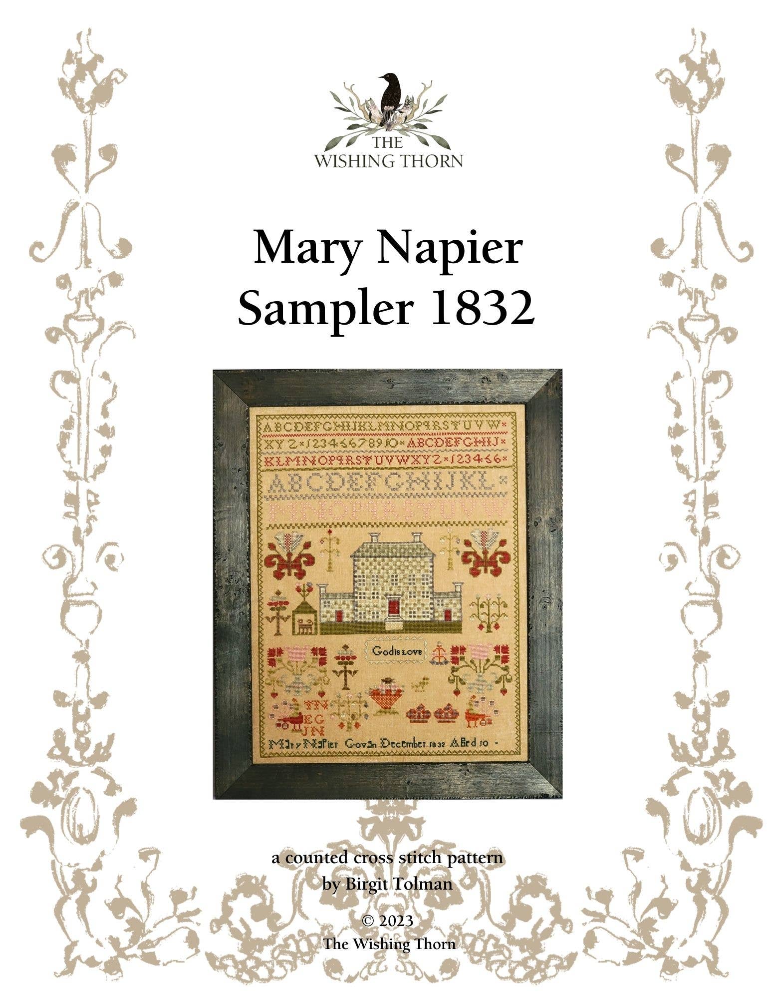 This charming sampler is a lovely example of the fine artistry of hand stitching. The sampler is made up of various blue alphabets, with good composition and design. The original was stitched on a tiny count 70/68ct. This is a great project to work on for your blue sampler collection or if you need something new to add to your stash. You will receive TWO charts, one of which is a not over-one version for those that would love to stitch this on Aid a cloth. It's small enough to fit on any wall but detailed enough to be placed in a special location for display. Design size 205 by 261 stitches DMC 930 matches the faded front and DMC 3750 matches the brighter back. 14/28ct 14.75" x 18.75" cut fabric 21" x 25" 16/32ct 12.75" x 16.25" cut fabric 19" x 22" 18/36ct 11.50" x 14.50" cut fabric 17" x 21" 20/40ct 10.25" x 13.00" cut fabric 16" x 19" Thank you and happy stitching! ©The Wishing Thorn. All Rights Reserved