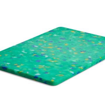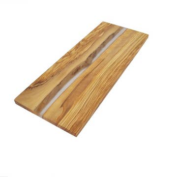 This large cutting board is crafted from bamboo and adorned with pigmented resin, giving it the appearance of a serene ocean wave. Each cutting board is hand-finished, so while the color scheme is consistent with the one pictured, the wave shapes will differ. The dimensions of the board are 15" x 11" x 0.4". Bamboo is a denser alternative to traditional wood cutting boards, providing a highly cut-resistant surface. Additionally, bamboo is naturally antibacterial, and the cured resin used to embellish the board is food-safe. To ensure longevity, each cutting board is pre-oiled multiple times before delivery.