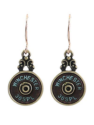 2 Tone Winchester Bullet In the Target Sports Metal Casting Brass Bangle Bracelet _Please check the Diameter. It may be smaller in diameter than you expected. But our bangle size is standard_ FR4105 2-Tone Filigree Winchester Bullet Casting Bangle FR4247 Patina Filigree Winchester Bullet Casting Bangle Western Cowboy Pistol, Gun Bullet Jewelry Earring Closure : Fish Hook Size Free : 2 3/8" Top Face : 3/4" DIA Metal Color : Two Tone Brass, Zinc Lead & Nickel & Cadmium Free