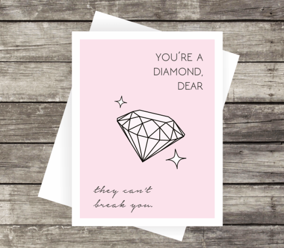 Let them know you're in their corner with a lucky pair of pink fuzzy dice. Printed on 100% recycled paper and paired with a coordinating envelope. Blank inside and sealed in a protective cellophane sleeve. Size A2 (4.25" x 5.5"). Card reads "You don't need luck, you've got this!" alongside an illustrated pair of pink fuzzy dice tied with a bow.