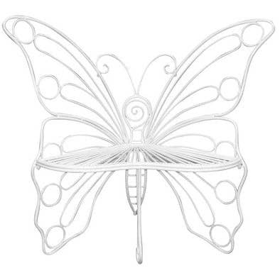 Beautiful butterfly bench in antique black. Perfect for corner display. Made from metal. Distance from the wall to the end of the wing is 18inches.