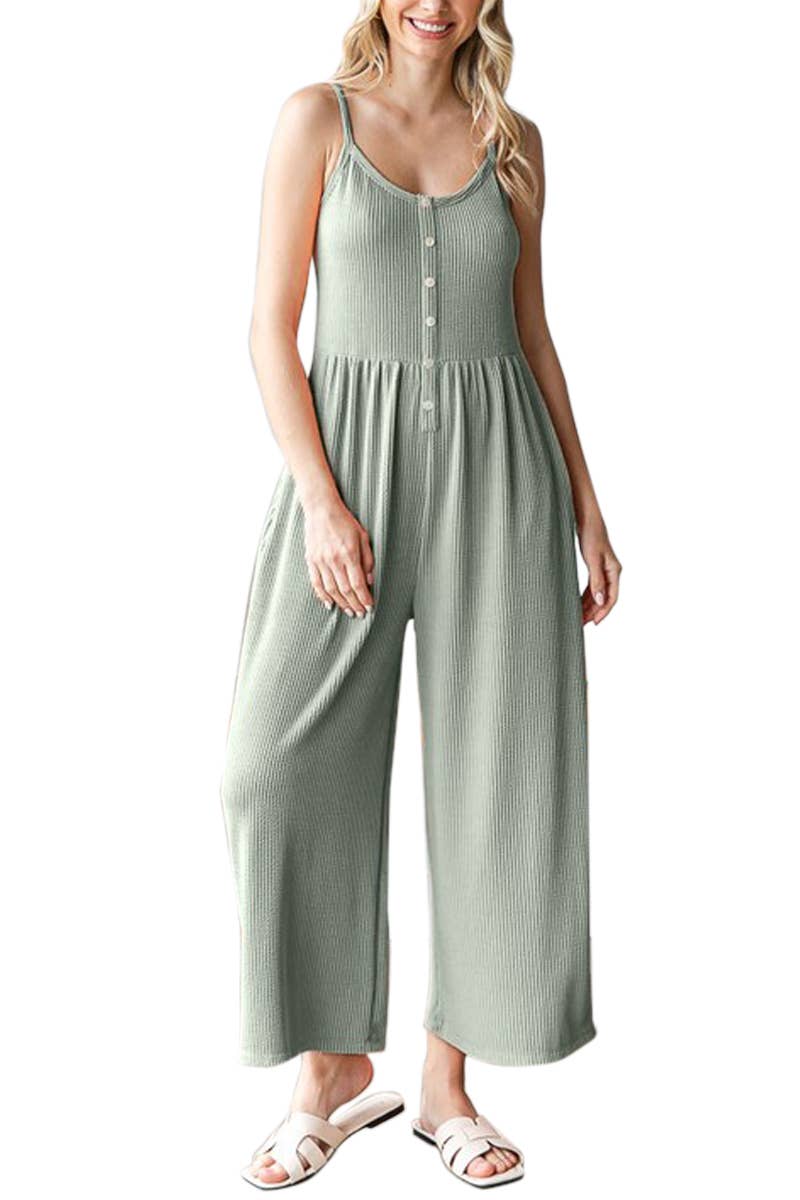 Style # BP2599X Designed for ultimate comfort and effortless style, this plus-size sleeveless jogger jumpsuit offers a relaxed and flattering fit. The flowy silhouette drapes beautifully, while the jogger-style ankle cuffs add a trendy touch. Whether lounging at home or heading out, this one-piece outfit is a must-have for easy, everyday wear. -Soft, lightweight fabric for breathable comfort -Adjustable spaghetti straps for a customizable fit -Elasticized jogger-style ankle cuffs for a modern touch -Side pockets for convenience and practicality -Relaxed, flowy fit that flatters all body shapes Plus size jumpsuit, sleeveless jumpsuit, plus-size jogger jumpsuit, relaxed fit, flowy jumpsuit, trendy plus-size fashion, comfortable loungewear, everyday chic, effortless outfit, casual one-piece, flattering fit, easy layering. Model is 5' 8" and wearing a 1X.