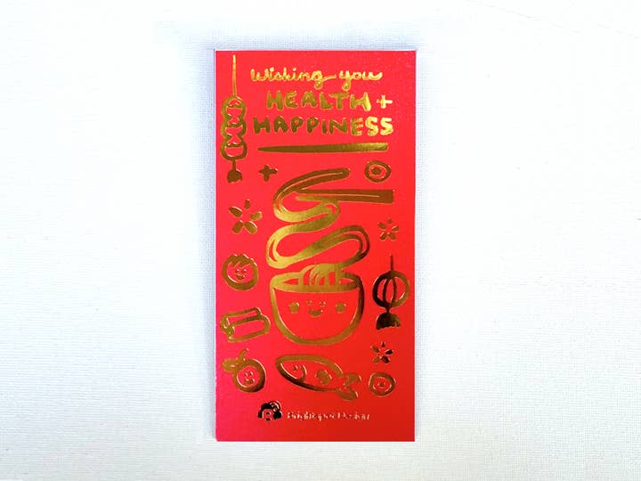 SKU: RED001 Made in China Color: Gold and Red Finish: Foil Occasion Theme: Lunar New Year Theme: Food & Drink Tone: Cute Product Language: English Weight: 38.84 g (1.37 oz) UPC: 810134202825