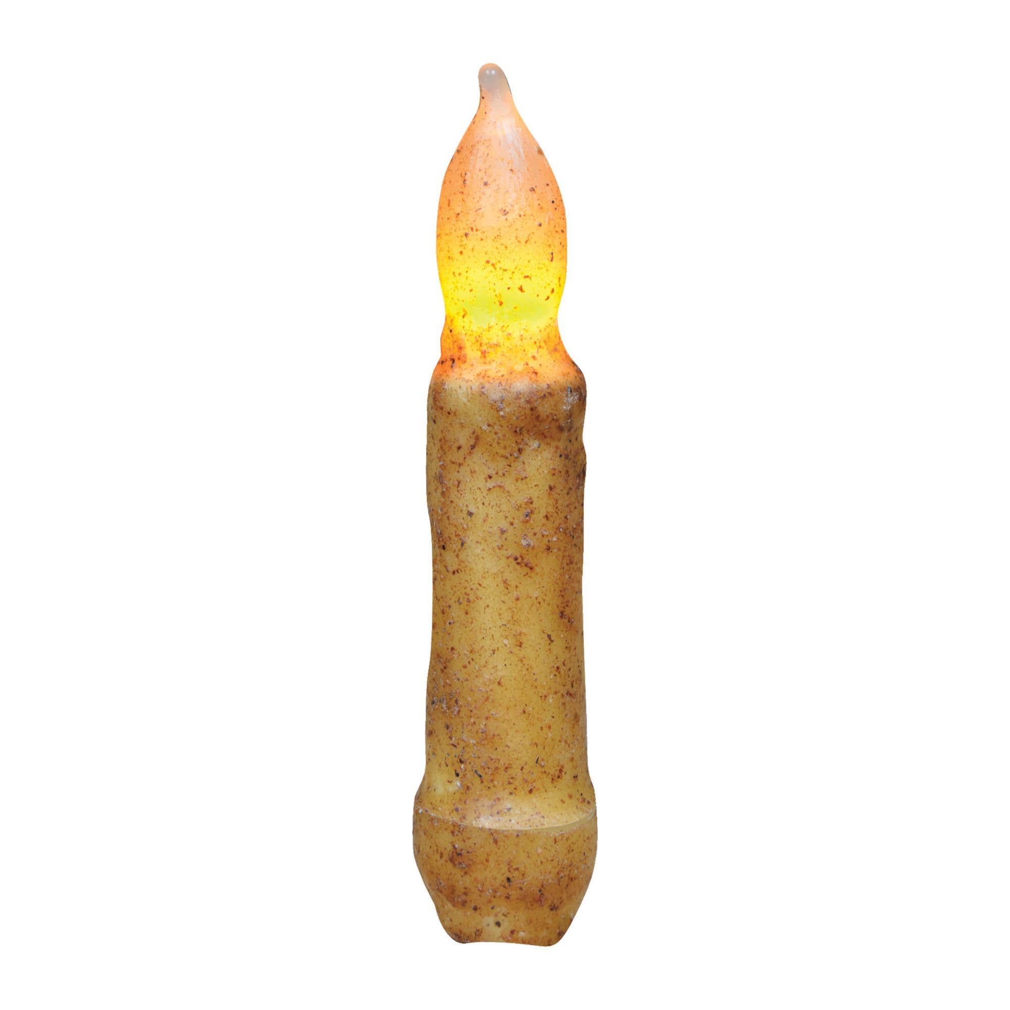 A new style of wax dipped, battery-operated taper candles. Each taper is dipped completely, and given a textured look with unique variations of color in the wax layering. Cinnamon scented. This candle requires 1 AA battery (not included).