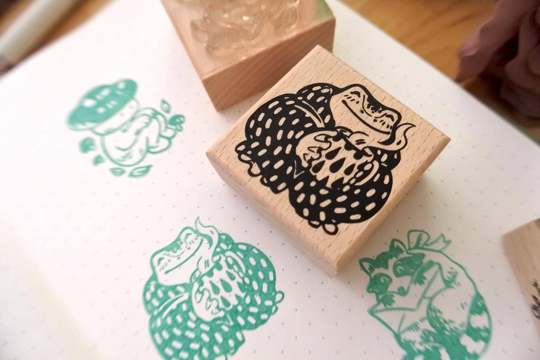 Your customers will love this sweet frog illustration and the versatility of this mini stamp. This frog stamp provides a detailed impression that can fit in a bullet journal, on a postcard, gift tag, or envelope. It can also be repeated to create a pattern. This stamp will add a fun detail to any crafting or writing project your customer wants to create! All our rubber stamps start out as hand illustrations. The artwork is then sent to our USA manufacturer who creates the rubber portion of our stamp. Then the rubber stamps are assembled and hand stamped in our studio.