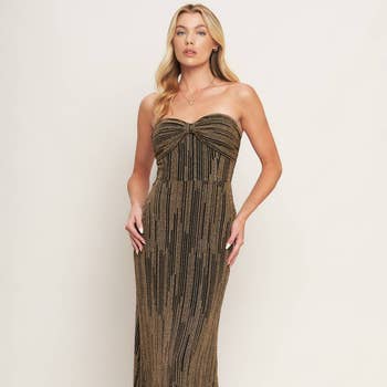 top too big and would never stay up and appears stretched out but the dress is too narrow in the body.