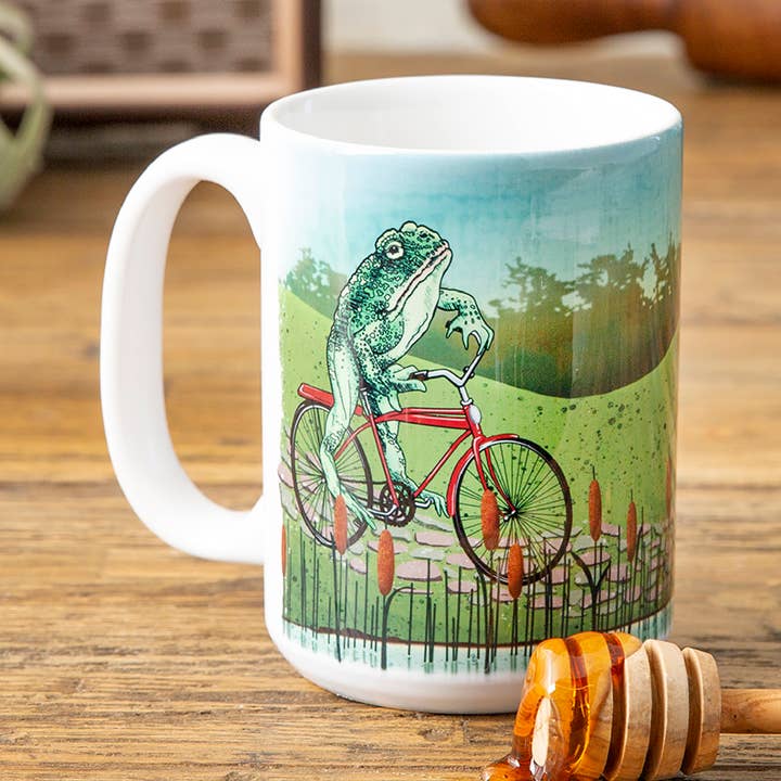 Vibrant illustrated snail design on a 15 oz ceramic mug. A whimsical pick for cottagecore boutiques, nature gift shops, and novelty kitchen retailers. Details: - 15 oz durable ceramic — a home décor and kitchen & tabletop staple - Full-color sublimation print; vibrant and long-lasting - Dishwasher safe; hand washing recommended to extend print life - Microwave safe - Small batch production in Denver, Colorado - Sold in case packs of 6; original artwork — hand illustrated by Two Little Fruits A consistent bestsellers pick in drinkware and coffee & teaware. Original artwork. High gift shop sell-through. Strong reorder item. Minimum 2 per design.
