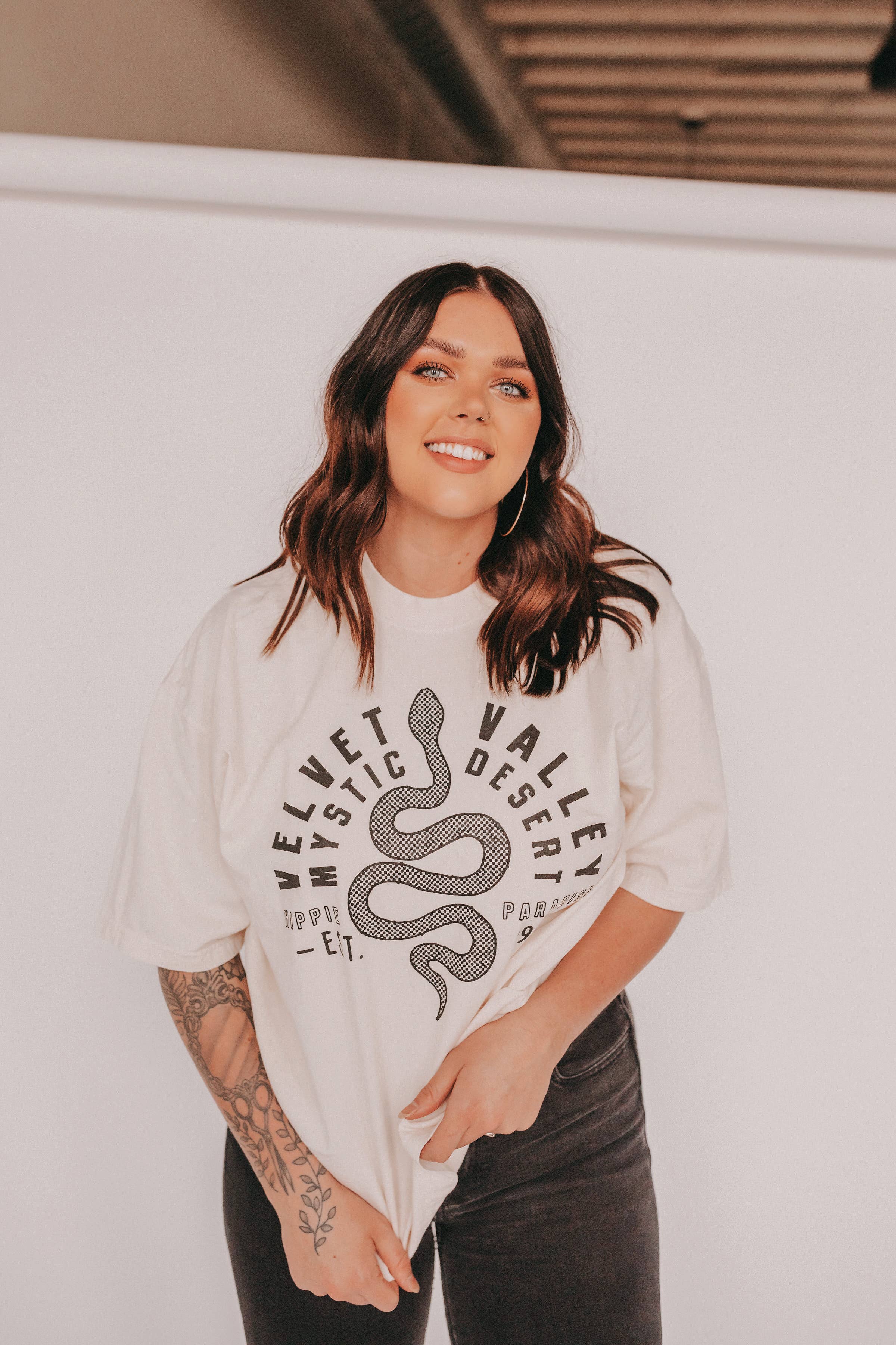 Relaxed fit 90/10 cotton polyester *Model is wearing a size XL for an oversized fit * All tees are made to order. Please allow 7-14 business days for your tees to be custom printed and shipped.