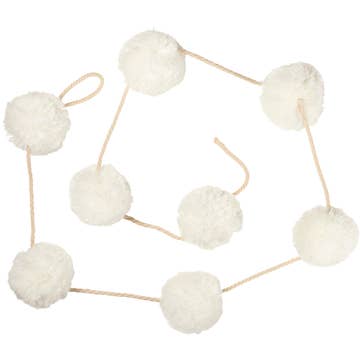 Festive any time of year, these cheerful pompom garlands feature color-fast acrylic yarn with 1.5" pompoms on a braided cord. Measuring approximately 118" in length with an exuberant assortment of colored pompoms or pure white. Link them together for more decorating options. Sold in sets of 2. Fair trade verified.