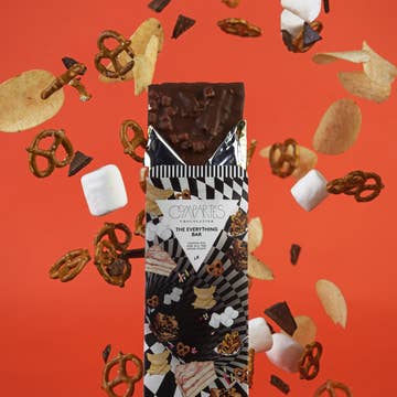 crunchy mini pretzels and buttery toffee dance in premium, rich dark chocolate. so darn delicious, it should be outlawed. product inspiration: “for me, pretzels dipped in chocolate are very comforting. toffee dipped in chocolate is delicious. now pretzels and toffee dipped in chocolate should be outlawed. i am always trying to test the limits of our culinary pleasure and i have come to realize that there is none. so i went ahead and put these three elements together so i can have the most comforting delicious experience every time. join me?” — chef michael bar size: 0.39 oz