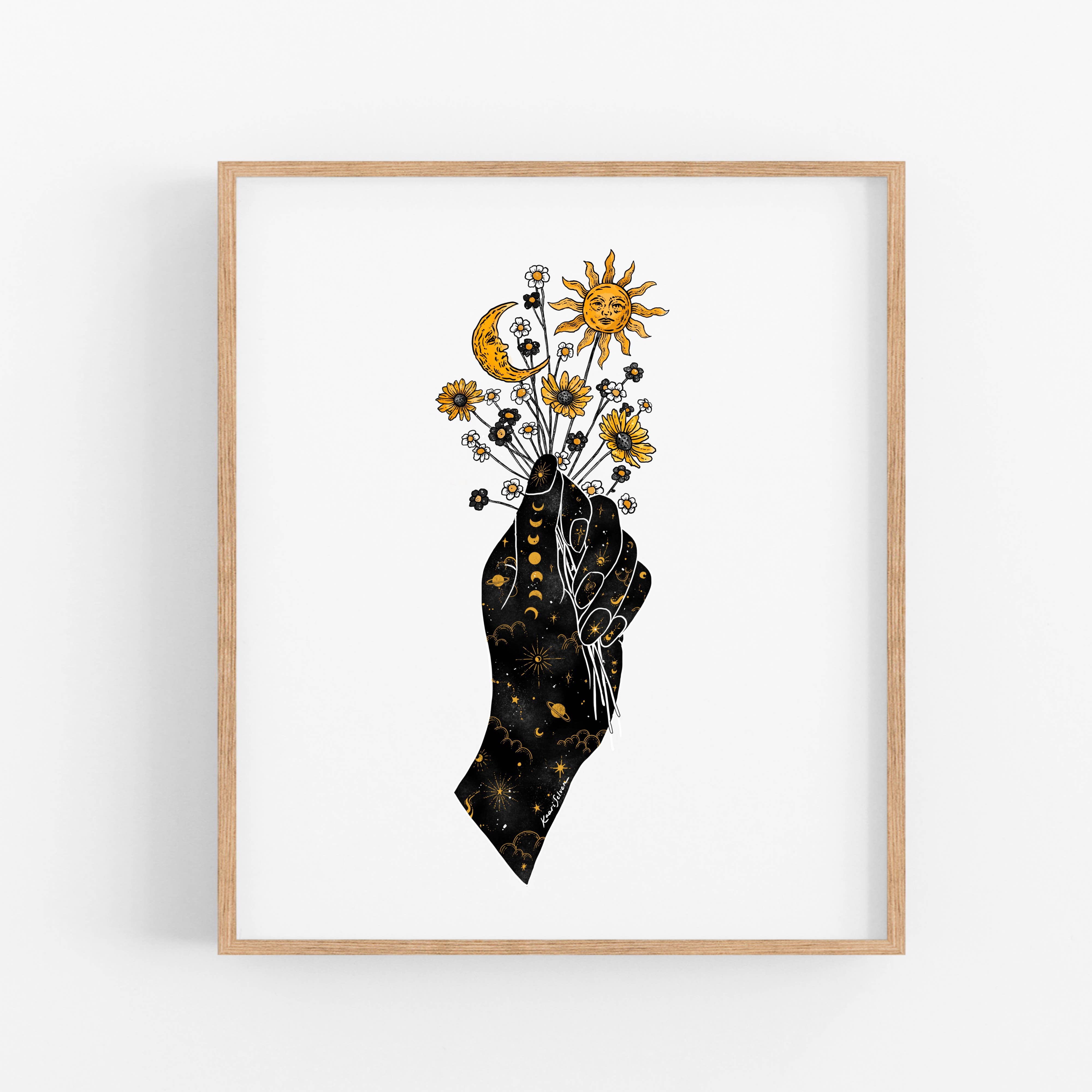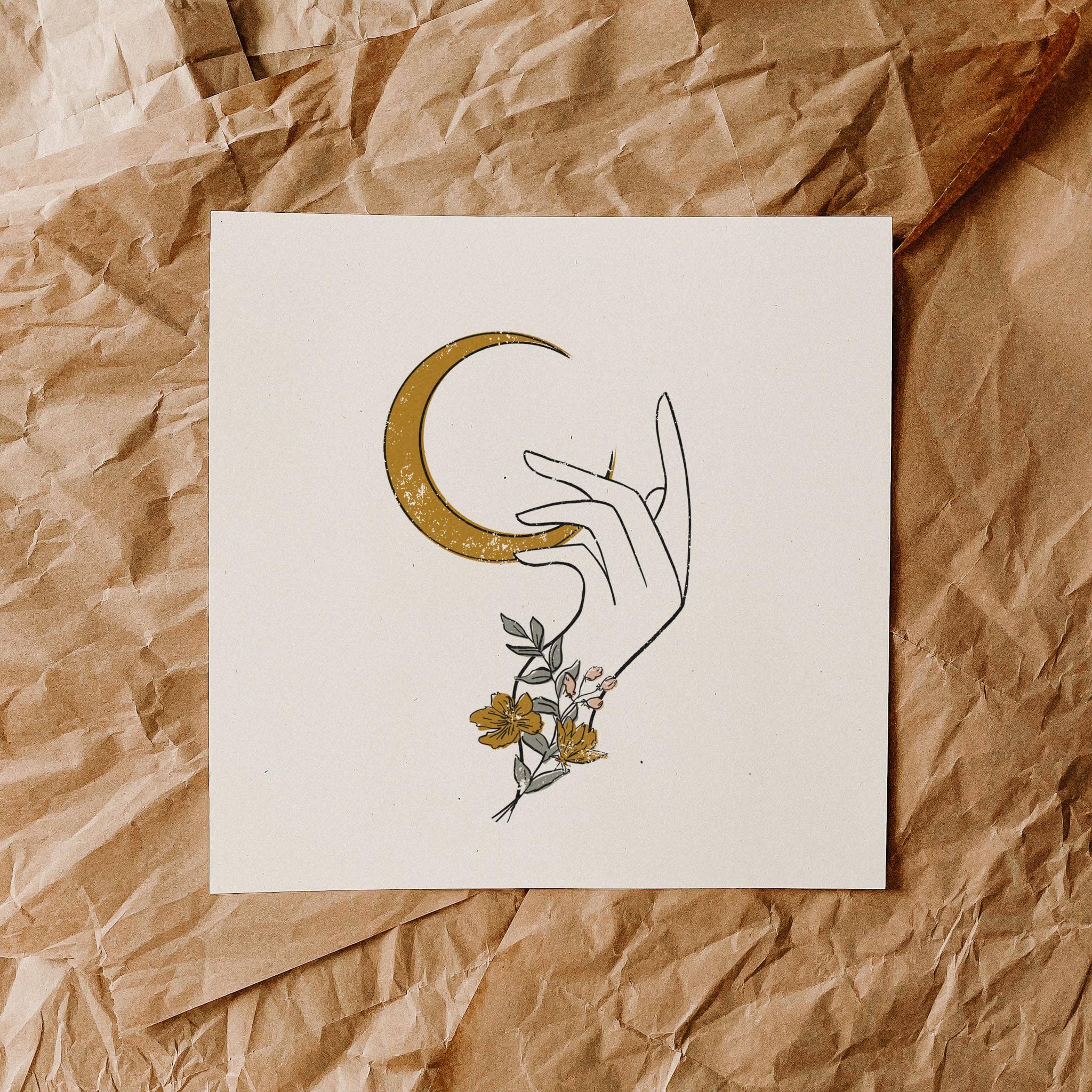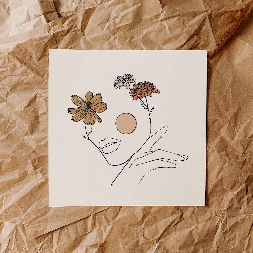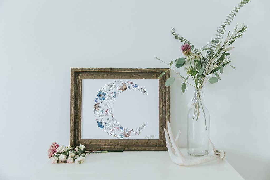 "Moonflower" Print Printed on 100% Recycled Cardstock, Off-White Matte Speckled (natural flecks) Frame not included. Prints are individually packaged with a thick card stock backer board and sealed cellophane sleeve. Designed and printed in Kansas City, MO by Jess Macy of colorbloKC (@colorblokc).