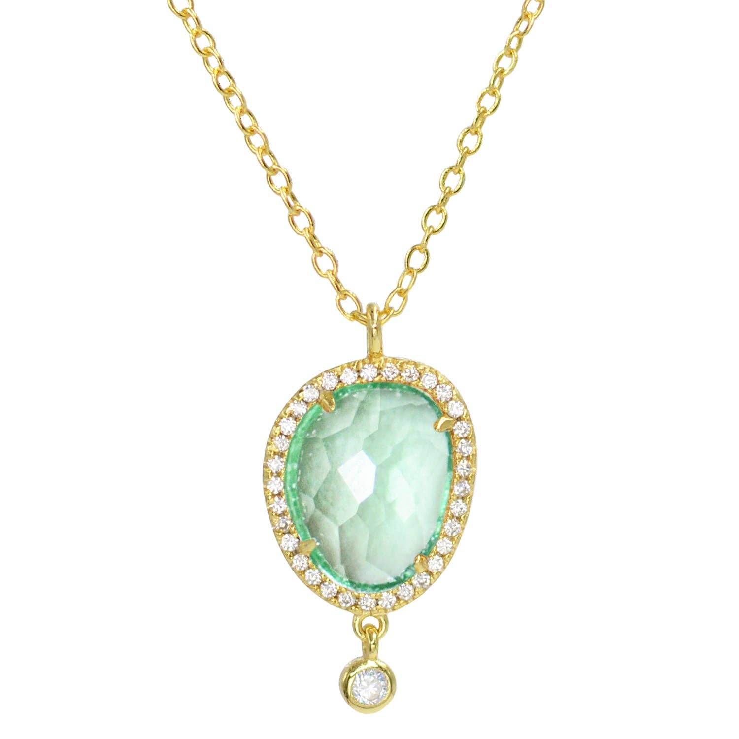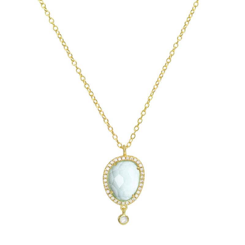Like the calming colors of the ocean, Marina is the perfect little statement necklace. This lovely necklace is made with lab-created gemstones in many beautiful colors. Set in 925 Sterling silver and surrounded by pave crystals. * Crystal accents * Sterling silver, 14K gold plated * Adjustable Sterling silver slider chain up to 18″ * Lab-created colors: London Blue Topaz, Morganite, Tanzanite and Paraiba * Dimensions: 15x13mm
