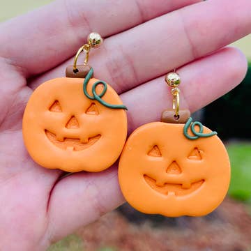 Our Pumpkin Hoop earrings are perfect for everyday fall wear. Crafted with a simple design, these earrings provide a stylish yet effortless look. Let your personality shine with classic fall accessories. Measures: 1.5” including the hoop Materials: polymer clay, gold leafing, and stainless steel hoop *subject to variation due to the handmade process