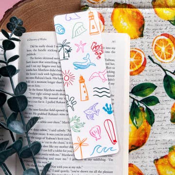 Set of 4 Bookmarks. Each bookmark is printed with the design on both sides, printed on sturdy 110 lb paper. Bookmark sets are packaged in clear cello sleeves with a hole for optional hanging. Bookmark size: 2x6