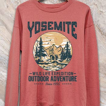 YOSEMITE MOUNTAIN GRAPHIC MINERAL SWEATSHIRT -MINERAL WASHED / GARMENT DYED -FRENCH TERRY FABRIC -VINTAGE LOOK & SOFT FEEL -100% COTTON -SEWED, DYED & FINISHED IN U.S.A. * Actual product & graphic color may vary from the images shown depending on the your device's display setting. ** MADE TO ORDER. Please allow up to 2-3 business days for us to process the order before your order is shipped. During the holiday season, please also allow for shipping delays and additional holiday order volume.