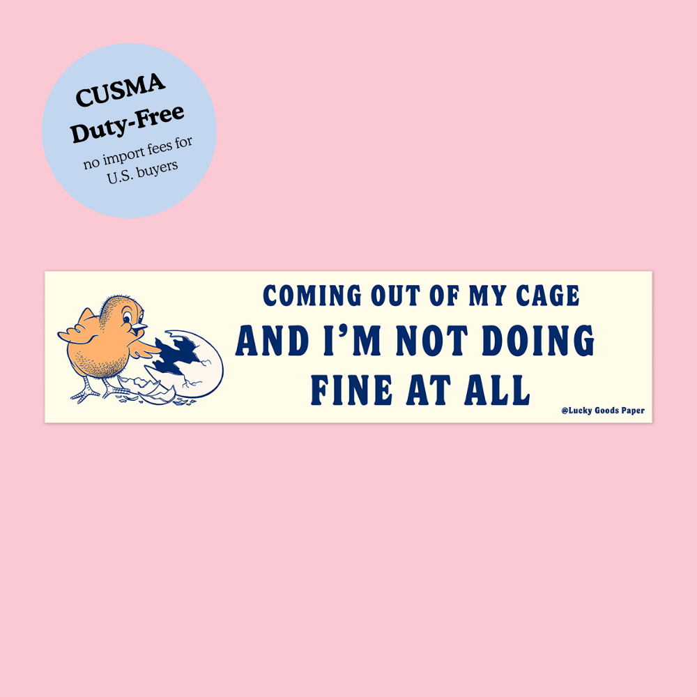Our bumper stickers are printed in Canada with rich, vibrant colours and a soft matte finish that feels as good as it looks. Whether you’re personalizing your car, laptop, toolbox, or cooler, these babies stick with you—literally. Details: ✿ Size: 2.25" x 9" ✿ Soft matte texture with a premium feel ✿ Extra-strong adhesive for serious sticking power ✿ Weatherproof and dishwasher safe ✿ Lasts up to 5 years (rain or shine!) ✿ Printed in Canada using eco-friendly GreenGuard inks Stick one on and make a statement—on the road or off it.