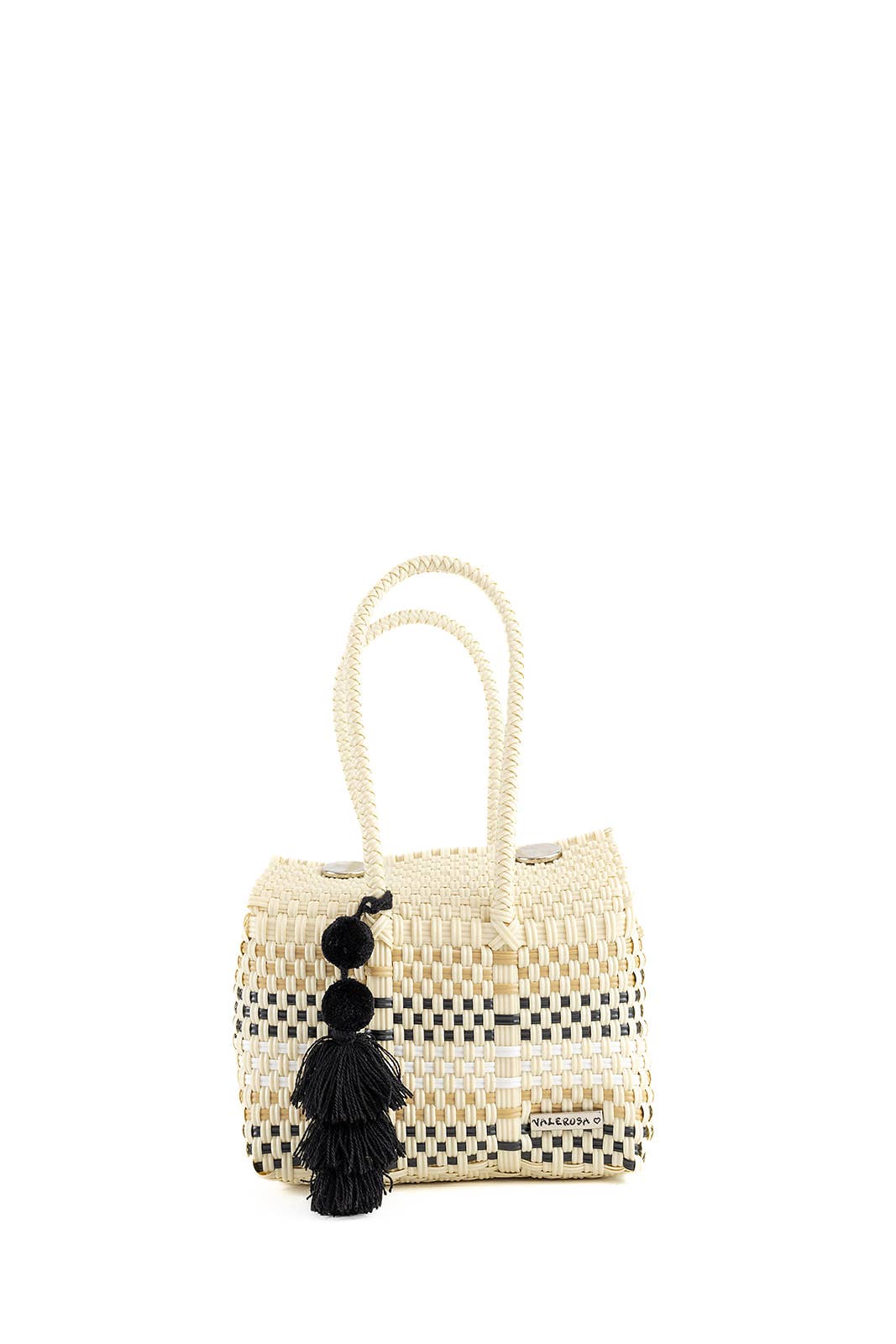 Made in Mexico Bag Size: Large Color: Beige and Black Fabric: Plastic- polyethylene (PE) Weight: 0.68 kg (1.5 lb) Dimensions: 38.1 x 17.8 x 35.6 cm (15 x 7 x 14 in) Production: Ethically sourced