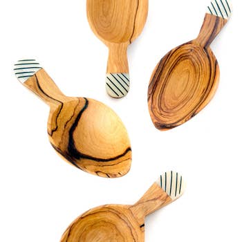 Handmade by artisans in Kenya using traditional methods passed down through the generations, these olive wood and batik handle serving utensils are a beautiful accessory to your appetizer trays or bar area.Product Features:Hand carved and hand-painted. No two are identical.Hand wash and air drySocially responsible goods that is empowering to consumers to purchase according to their values and help alleviate poverty. Fair trade is so much more than a product assortment. It's about safe workplaces, fair wages + community investment for factory employees.Made from sustainable wood and ethically sourced animal bones that would have otherwise been discarded.Each piece is approximately 6 to 7-inches longStory Behind the Art:The bone is "batiked" which is an age old art process used in Africa.Keywords: kitchen, bar, gift