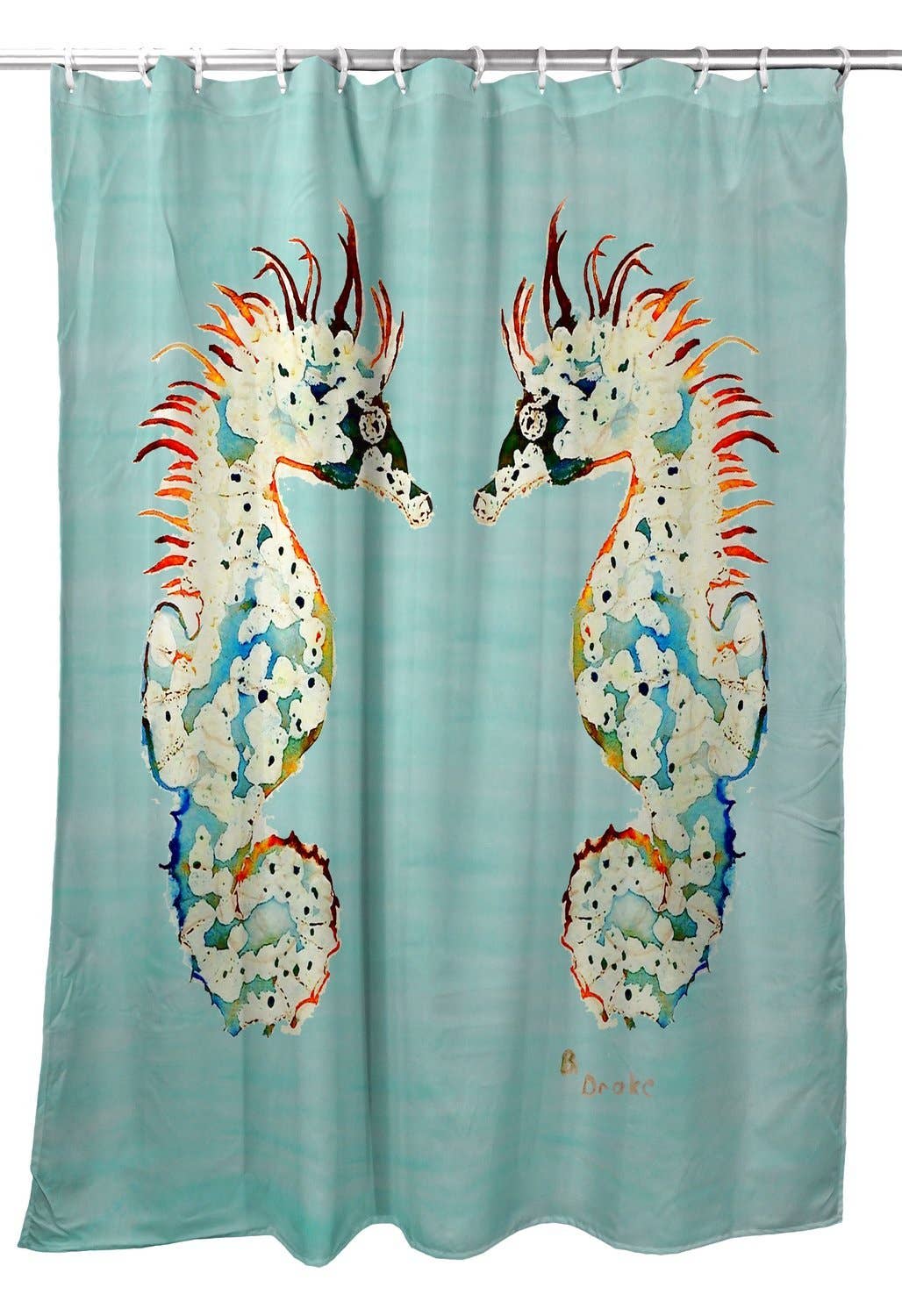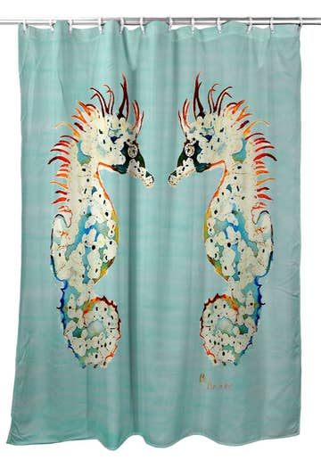 Coastal elegance meets pattern play. The Seahorse Vineyard shower curtain is hand-screened on cotton for a refined bath. 100% cotton heavyweight basketweave fabric unlined measures 72"x72" hand screened design