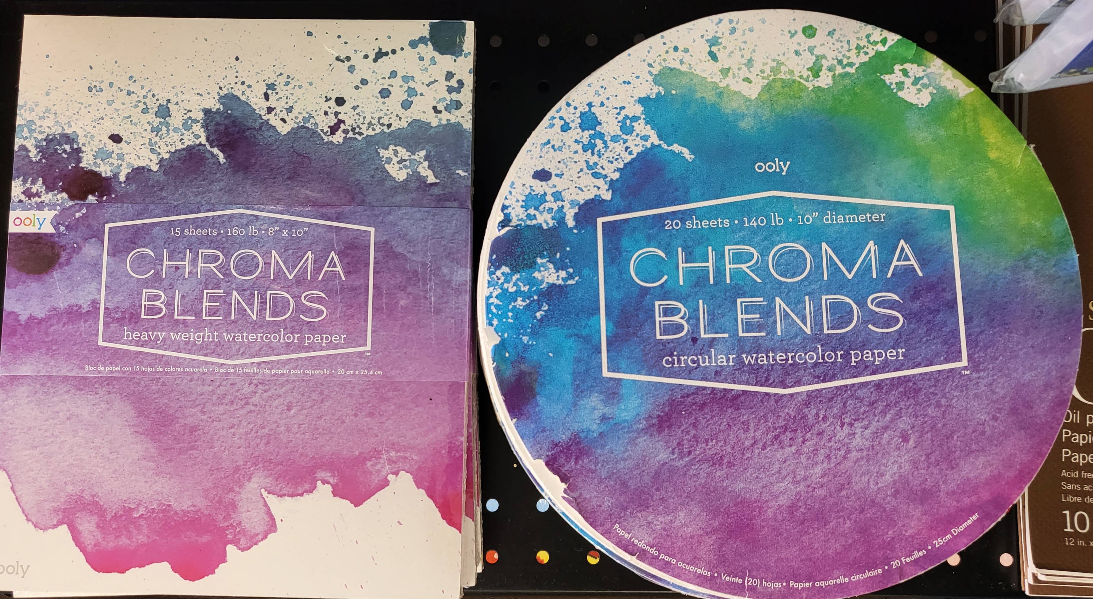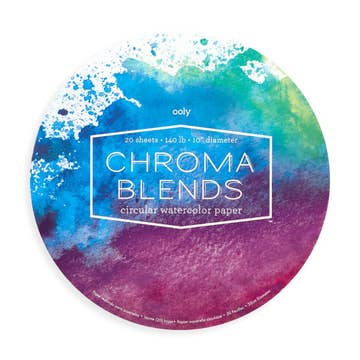 Experience watercolor painting in a unique way with the Chroma Blends circular watercolor paper pad. 20 sheets of high grade watercolor paper. Circular watercolor paper|10 inch diameter 20 sheets Bound on all sides to prevent paper from warping 140 lb heavy paper weight Acid-free paper https://blog.ooly.com/how-to-watercolor-for-all-skill-levels/ Suitable for ages 6 and up