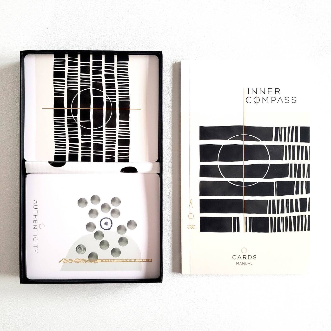 Inner Compass - Love cards are designed to help you experience love in all its possibilities and to strip away all the armor that you have built around your heart. Each of the 49 cards offers self-guidance, self-reflection, and aspirational growth to amplify love and compassion for yourself and the community around you. One card contains many levels of depth and interconnectedness so everyone can benefit from their use. Let your inner compass point the way toward love. < All first orders come with a free demo deck to showcase to your community > One Inner Compass - Love deck contains: - A stylish, timeless storage box - 49 beautifully designed cards on powerful, profound themes - Easy-to-use cards and an internal guide for every relationship in your life - Practical instructions with accompanying texts (per card) to help you interpret the cards and apply the insight