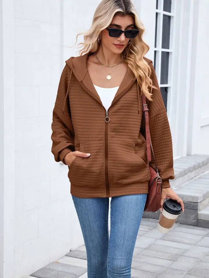 Leisure Days Textured Oversize Zip-Up Hooded Jacket