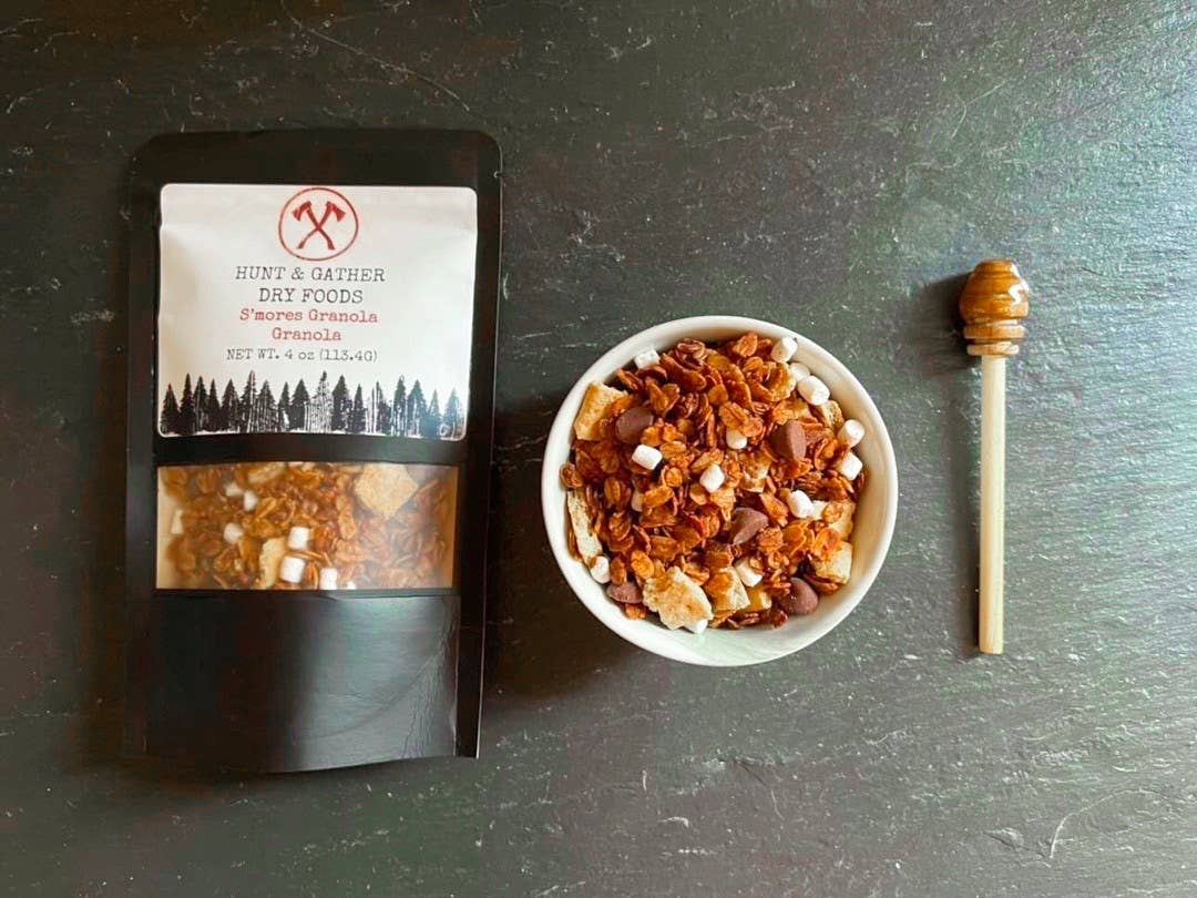 4oz 2 servings. The campfire sweet in the palm of your hand. Oats, flax seeds, honey, graham crackers, mini marshmallows, oil (evoo) salt, vanilla, & liquid smoke.