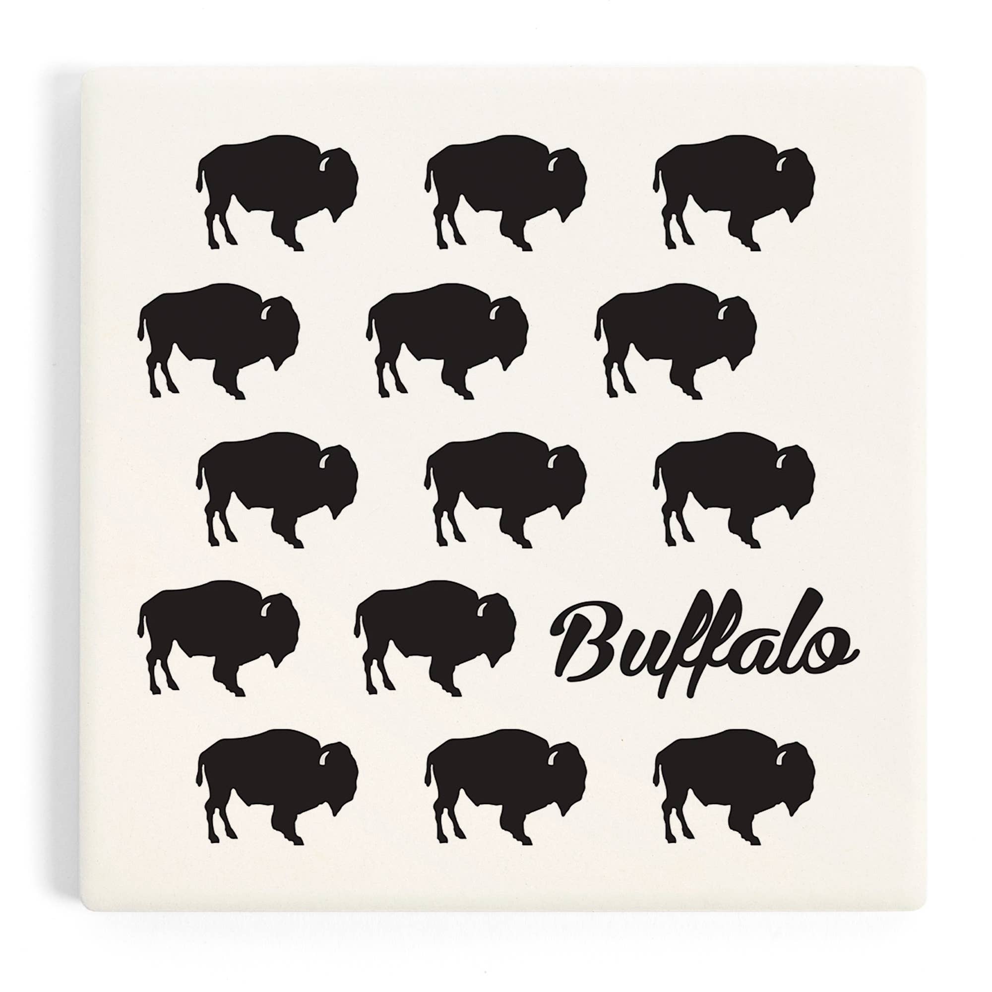 Leather Coaster - Buffalo Bison Curate a collection of our handmade leather coasters and watch your customers marvel and laugh while they purchase individual coasters OR mix and match their own custom set. Our handmade leather coasters are top quality! Each coaster has two plies of leather glued together, the sides are sanded and painted to match the top leather, heat stamped, and cork backed. We ship in ASSORTED COLORS so you will receive 5 of each design in different colors. We have yellow, orange, red, burgundy, kelly green, turquoise, royal blue, navy, grey, caramel, brown, and black. BRIGHT COLORS SELL THE BEST!!! If you don't like a color let us know. If you want specific colors let us know. If you want all one color (we highly discourage this) we can accommodate. Blank cork backs available. CREATE YOUR OWN CUSTOM DESIGN
