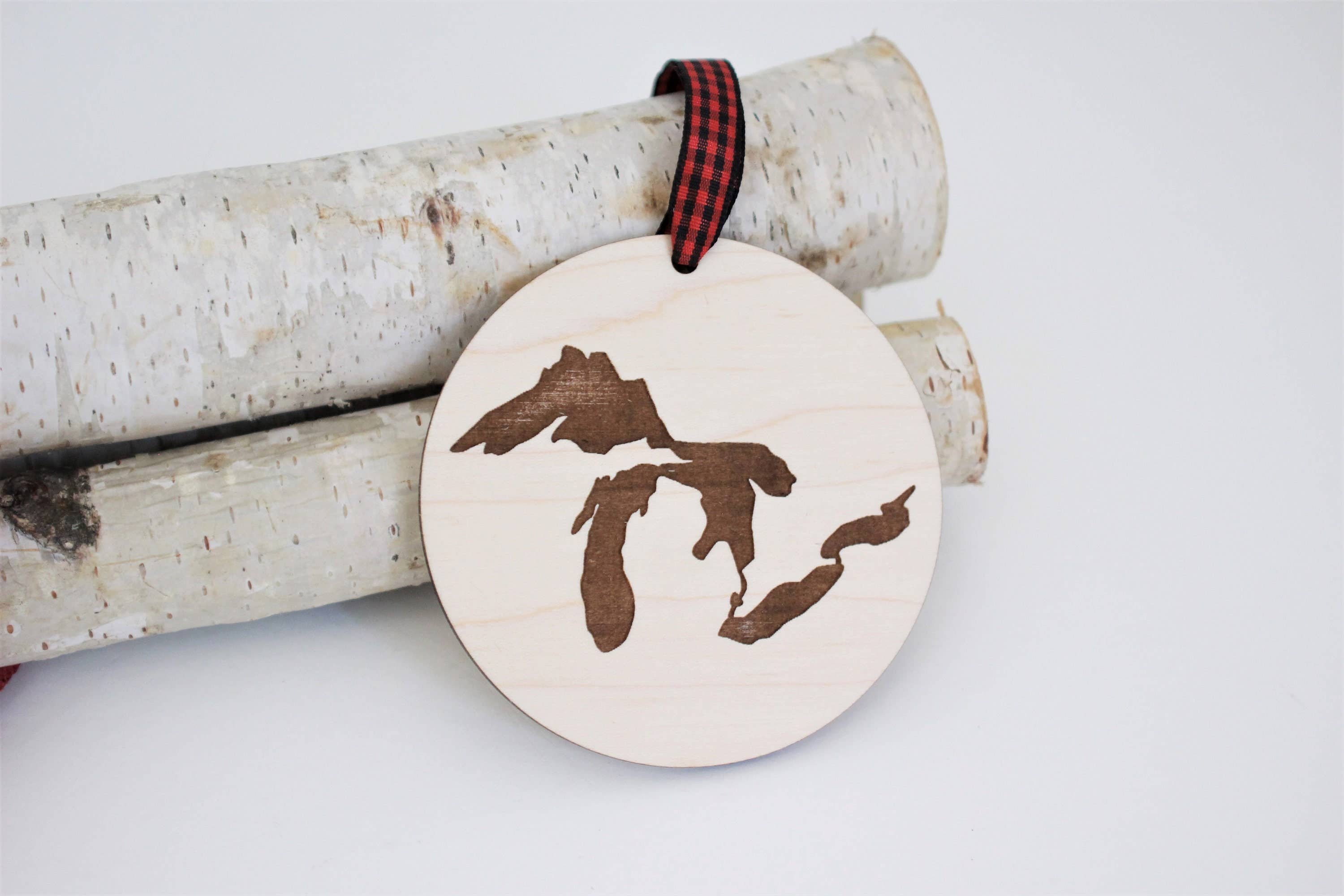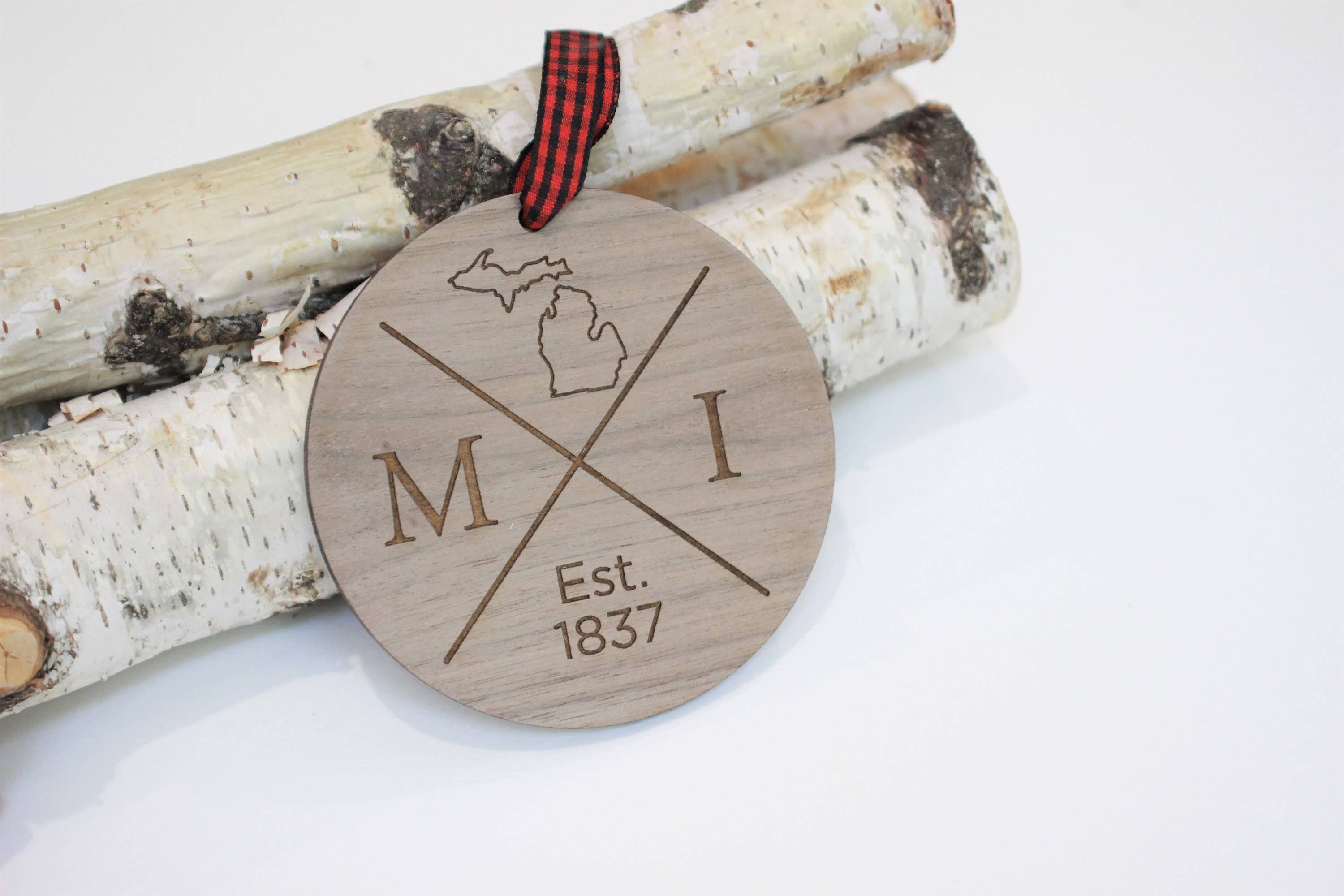 This Michigan Highlights Christmas Holiday Orament is a personalized keepsake that not only adorns your tree but also warms the hearts of those who call Michigan home. Make this season uniquely yours, and share the Wolverine State's spirit with a custom gift that captures the essence of Michigan. These Christmas holiday ornaments are a great way to celebrate the Mitten State. Perfect for gifting to travelers or as a new home ornament—because every tree deserves a touch of Michigan magic. Each ornament is made out of beautiful 1/4" maple and walnut plywood and is sanded individually before being assembled. All of our ornaments are made in the USA at our Grand Rapids, MI shop. We love doing custom orders! Message us with your ideas and we will make them a reality! Please contact us directly if you have any questions regarding our products. We would be more than happy to answer them.